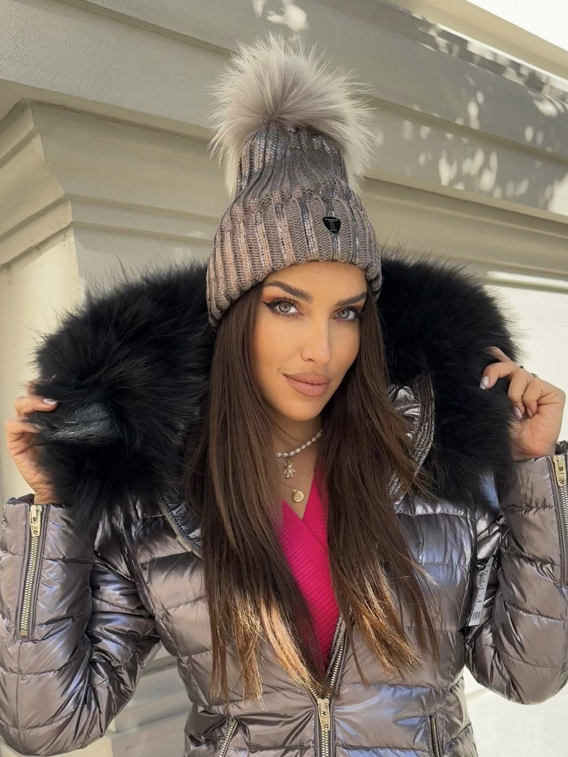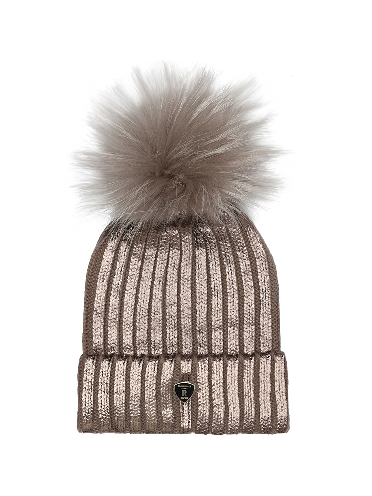 Švédska pletená čiapka s bohatým mývalom je univerzálnej veľkosti.