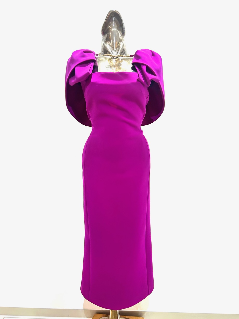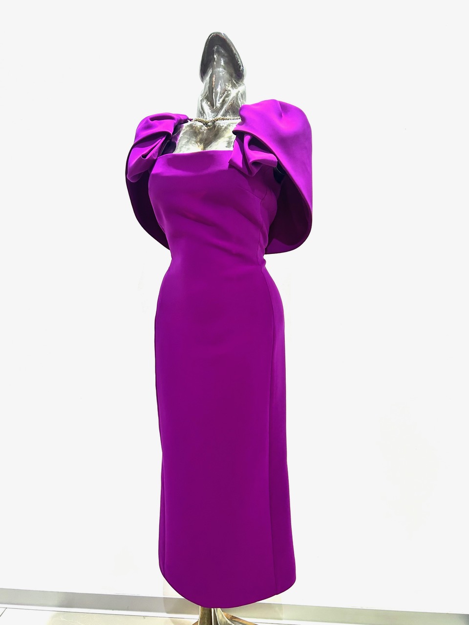 Úžasné spoločenské šaty na príležitosť. Šaty sú z elegantného príjemného materiálu s edinečným prevedením rukávov. Majú zadný zips.